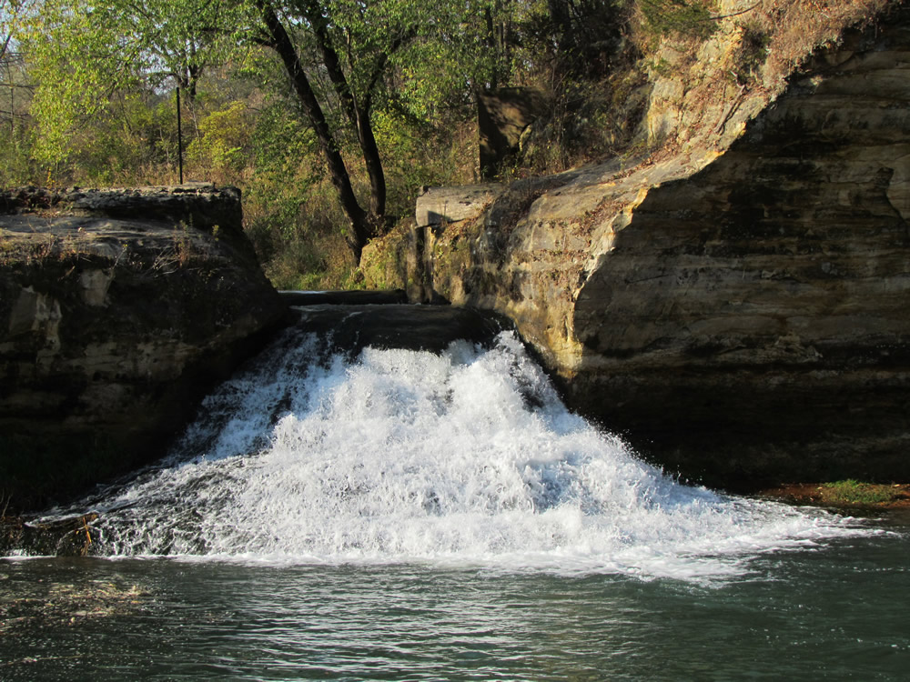 Located along the Great River Road National Scenic Byway, Big Spring Nature Area, Guttenberg, Iowa, features a stair-step waterfall with water cascading down a 100’ limestone wall. Enjoy a casual walk alongside the spring or hike up the north side of the area.